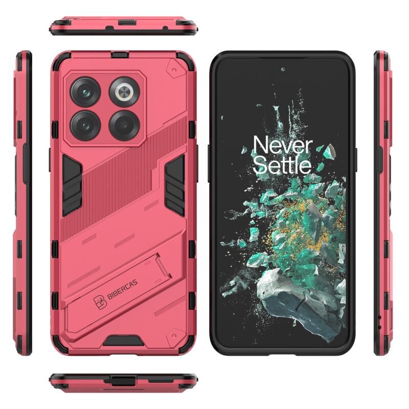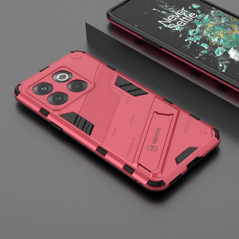 Για OnePlus 10T 5G Punk Armor PC + TPU τηλέφωνο υπόθεση με κάτοχο (ανοιχτό κόκκινο)