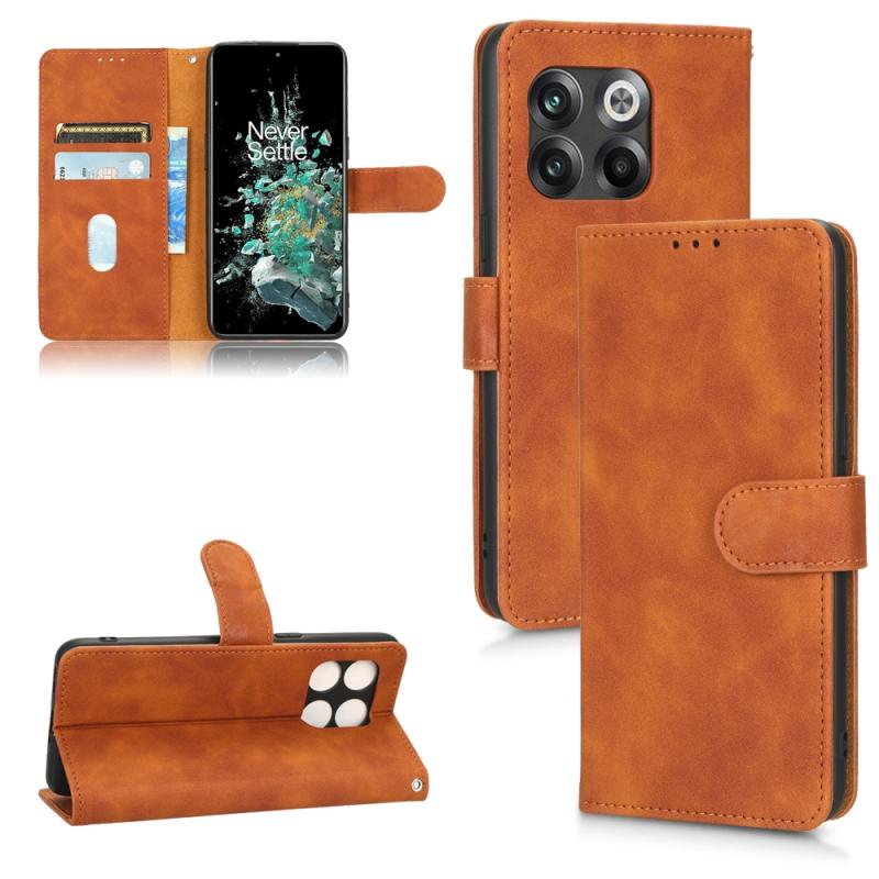 Θήκη τηλεφώνου από δέρμα με μαγνητικό κλείσιμο και αίσθηση δέρματος για OnePlus 10T 5G (Καφέ)