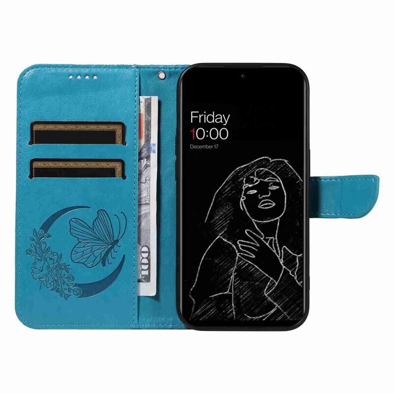 Θήκη τηλεφώνου από δέρμα με ανάγλυφο σχέδιο πεταλούδας Swallowtail για OnePlus 10T / Ace Pro 5G (Μπλε)