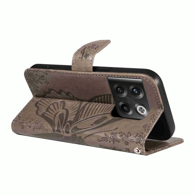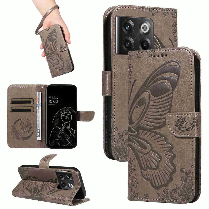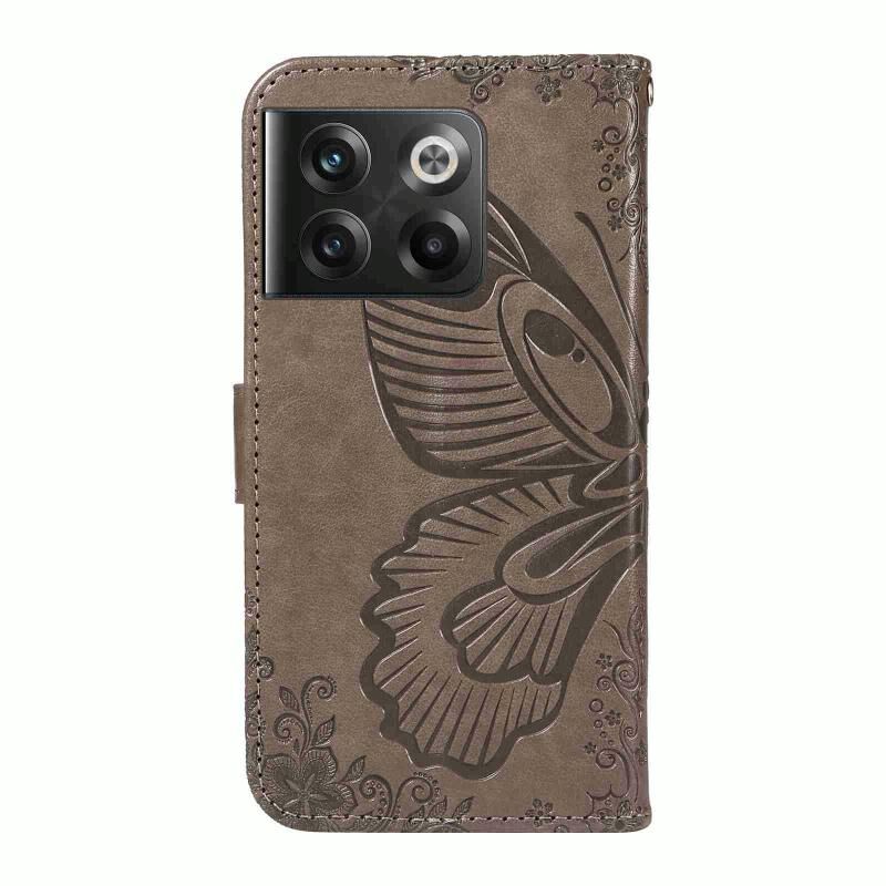 Θήκη τηλεφώνου από δέρμα με ανάγλυφο σχέδιο πεταλούδας Swallowtail για OnePlus 10T / Ace Pro 5G (Μπλε)