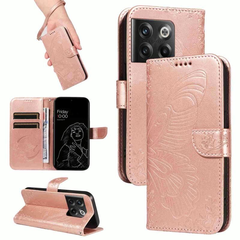 Θήκη τηλεφώνου από δέρμα με ανάγλυφο σχέδιο πεταλούδας Swallowtail για OnePlus 10T / Ace Pro 5G (Μπλε)