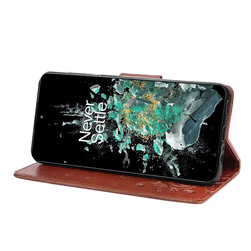 Θήκη τηλεφώνου από δέρμα με σχέδιο πεταλούδας για OnePlus 10T (Γκρι)