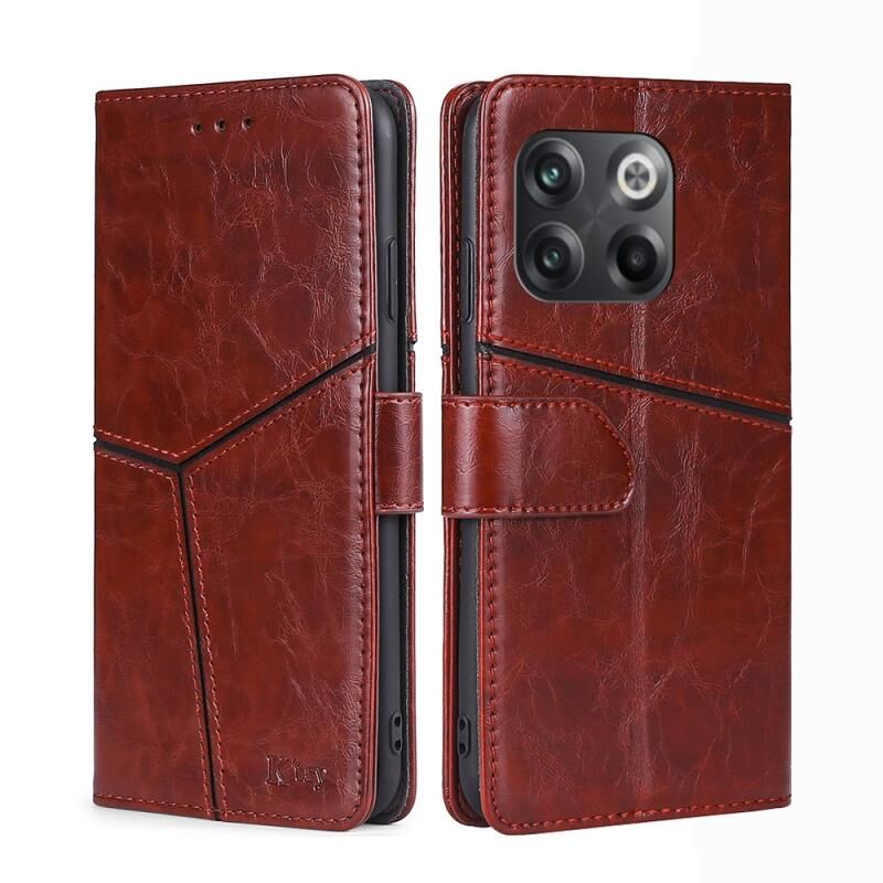 Για OnePlus 10T γεωμετρική ραφή δερμάτινη θήκη τηλεφώνου (σκούρο καφέ)