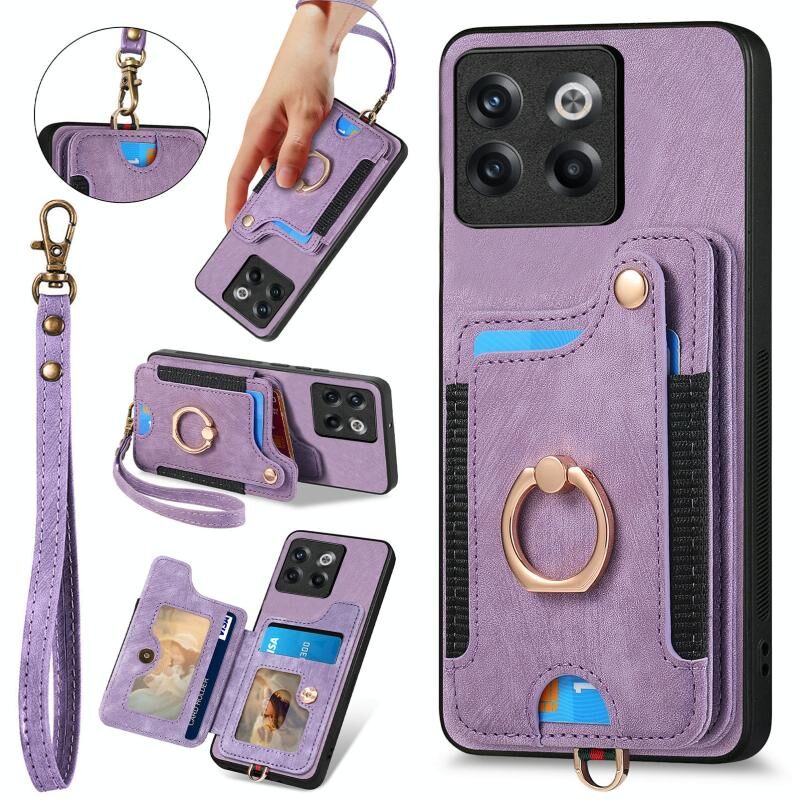 Για OnePlus 10T Ρετρό δέρμα αίσθηση δαχτυλίδι πολυ-κάρτα RFID πορτοφόλι υπόθεση τηλεφώνου (Μωβ)