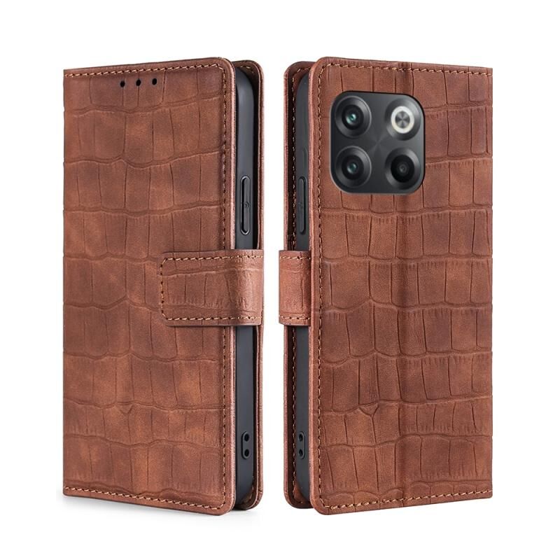 Θήκη τηλεφώνου από δέρμα με μαγνητικό κούμπωμα και υφή κροκόδειλου για OnePlus 10T (Καφέ)