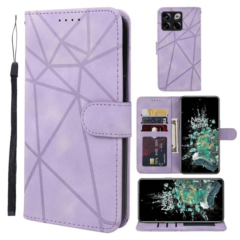 Για OnePlus 10T Skin Feel γεωμετρικές γραμμές δερμάτινη θήκη τηλεφώνου (μωβ)