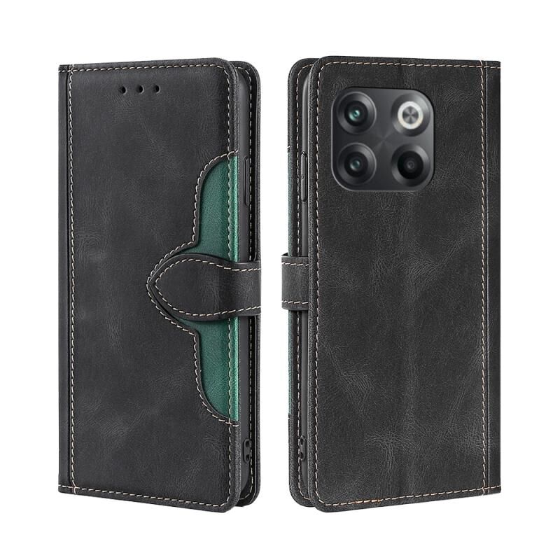 Για OnePlus 10T δέρμα αίσθηση μαγνητική πόρπη δέρμα τηλέφωνο υπόθεση (μαύρο)