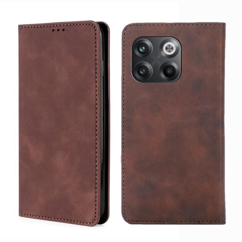 Για OnePlus 10T Skin Feel μαγνητική οριζόντια Flip δέρμα τηλέφωνο υπόθεση (σκούρο καφέ)