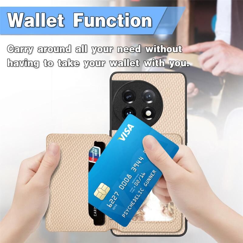 Για OnePlus 11 5G ινών άνθρακα μαγνητική κάρτα πορτοφόλι τσάντα πορτοφόλι υπόθεση τηλεφώνου (μπλε)