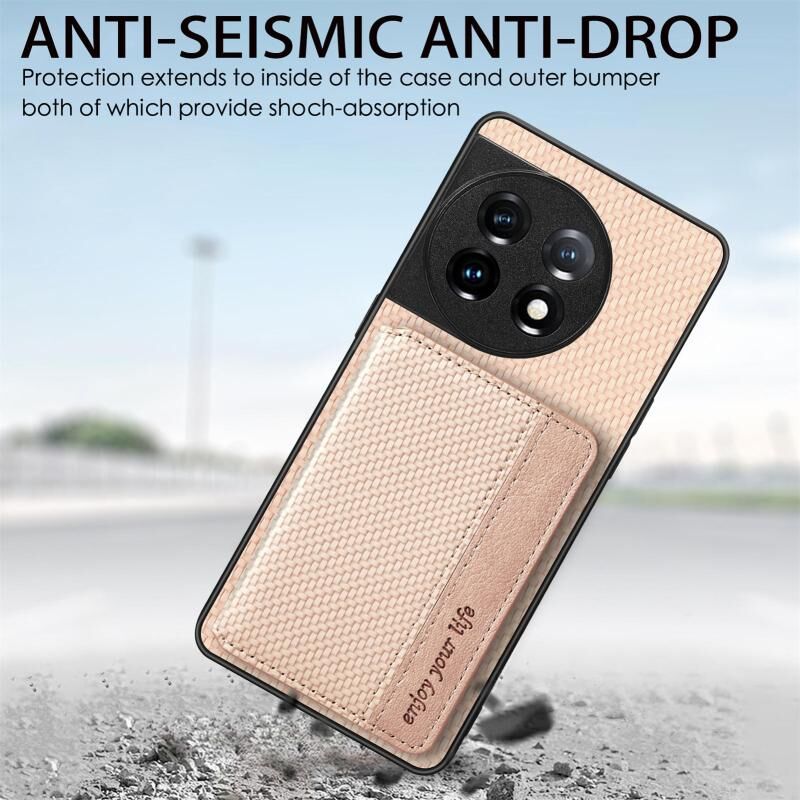 Για OnePlus 11 5G ινών άνθρακα μαγνητική κάρτα πορτοφόλι τσάντα υπόθεση τηλεφώνου (χακί)