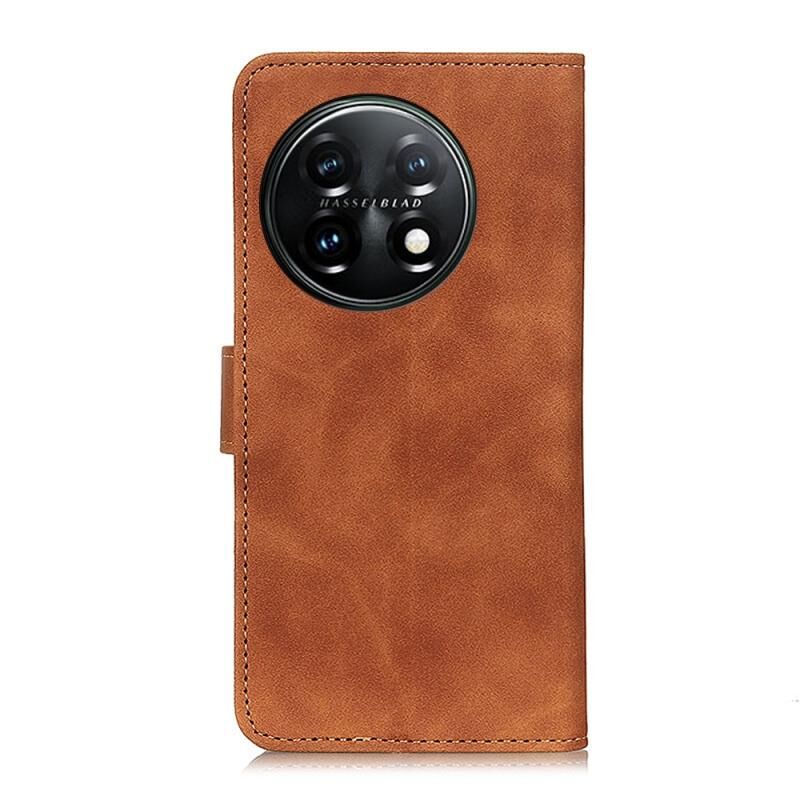 Θήκη τηλεφώνου από δέρμα με αναδιπλούμενο σχέδιο και ανάγλυφη υφή Retro για OnePlus 11 5G KHAZNEH (Μαύρο)