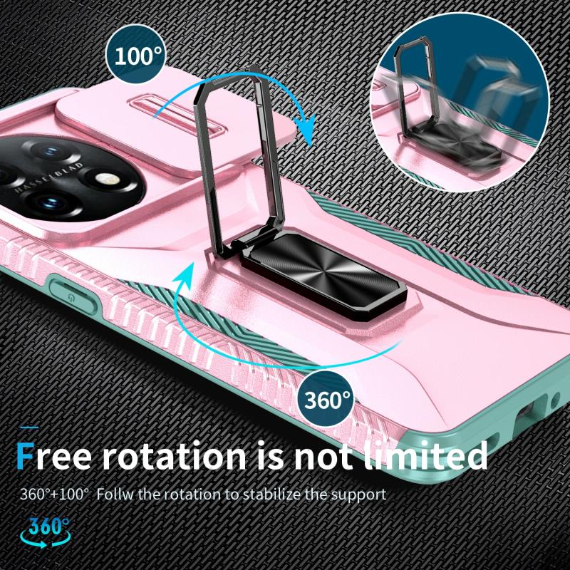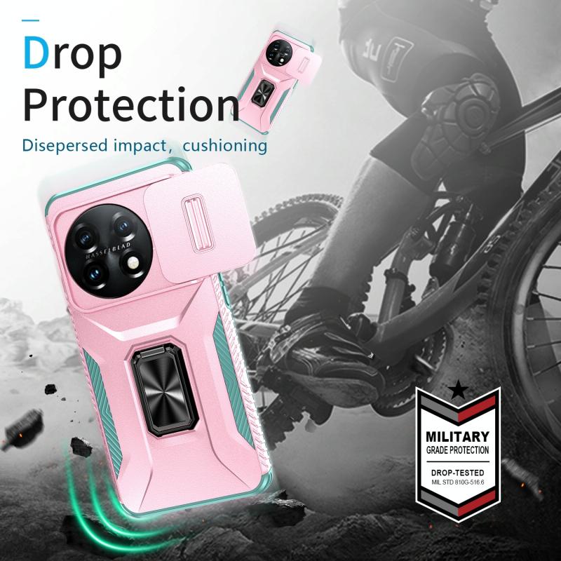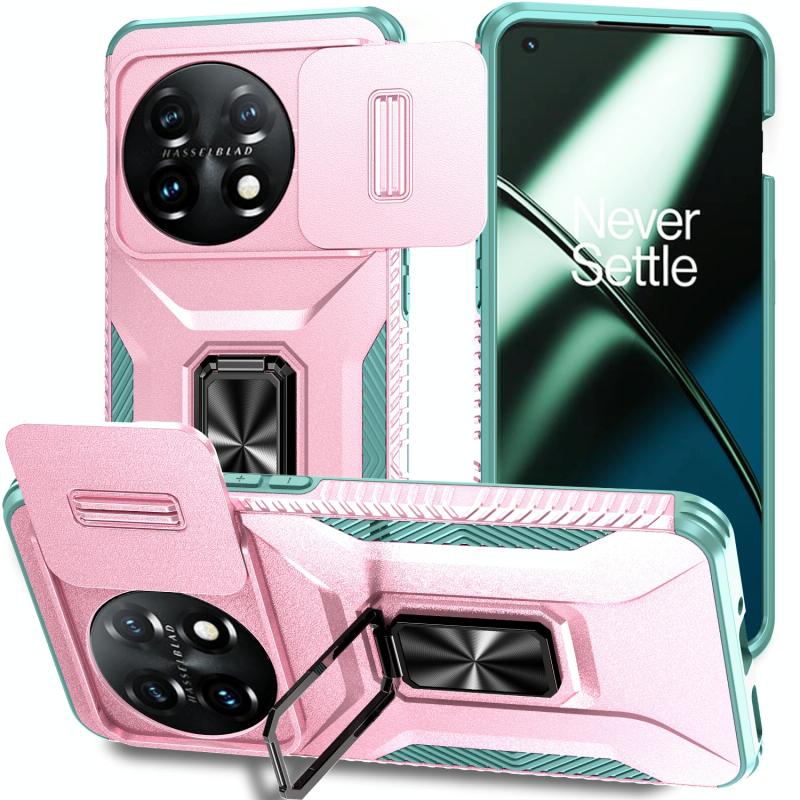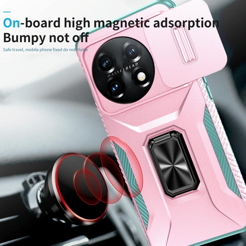 For OnePlus 11 5G Sliding Camshield Holder Phone Case(Pink + Grey Green)