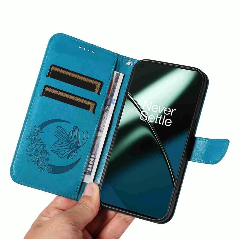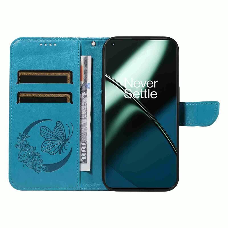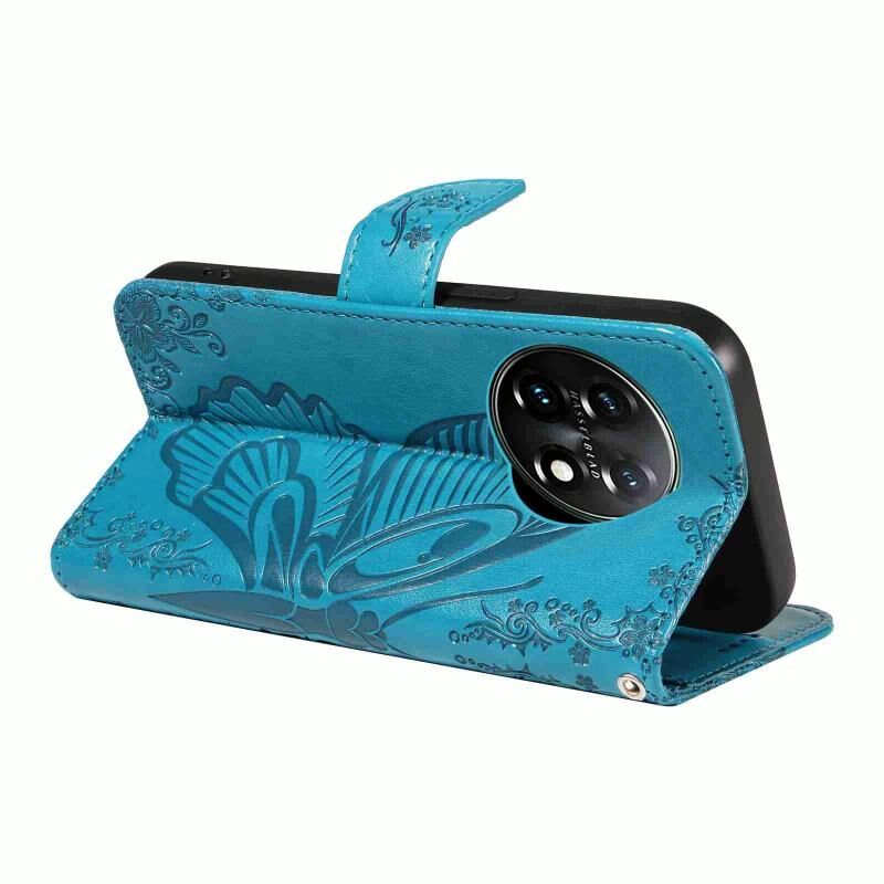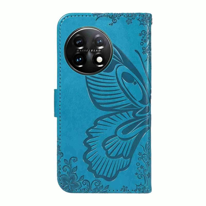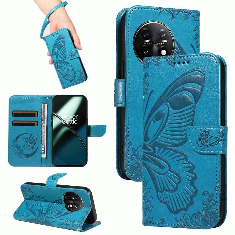 Θήκη τηλεφώνου από δέρμα με ανάγλυφο σχέδιο πεταλούδας Swallowtail για OnePlus 11 5G (Μπλε)