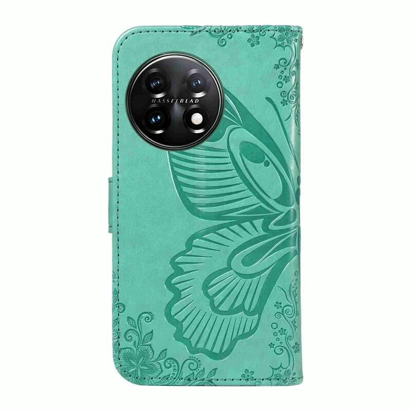 Θήκη τηλεφώνου από δέρμα με ανάγλυφο σχέδιο πεταλούδας Swallowtail για OnePlus 11 5G (Μπλε)