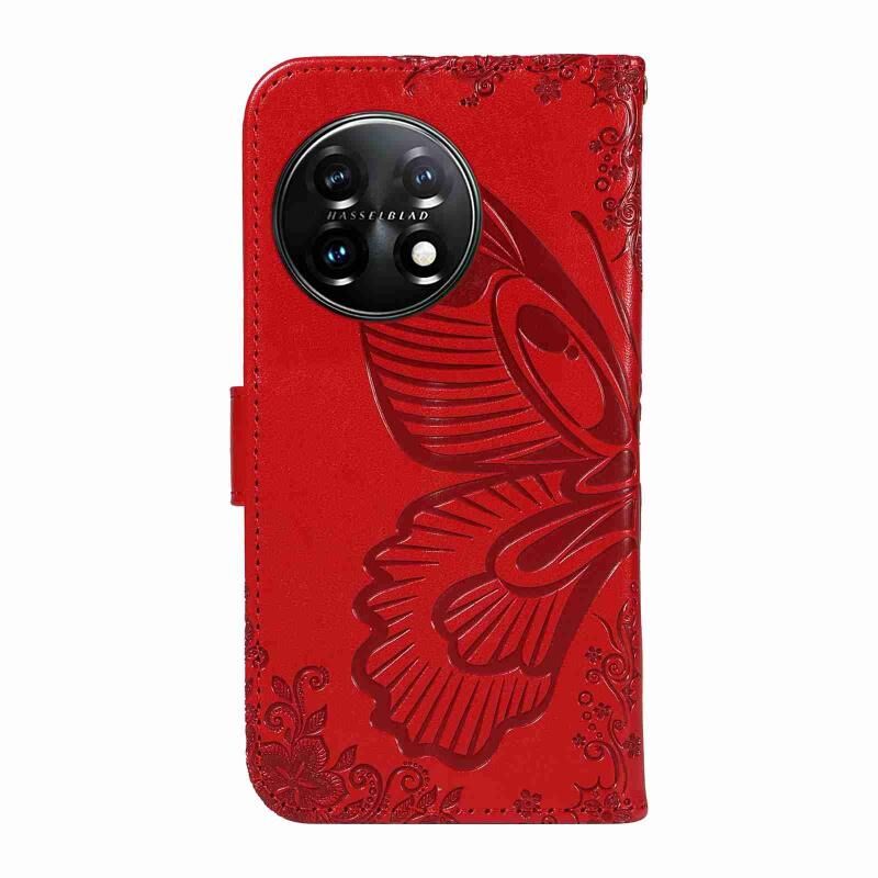 Θήκη τηλεφώνου από δέρμα με ανάγλυφο σχέδιο πεταλούδας Swallowtail για OnePlus 11 5G (Μπλε)
