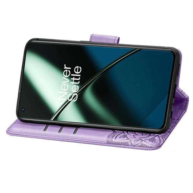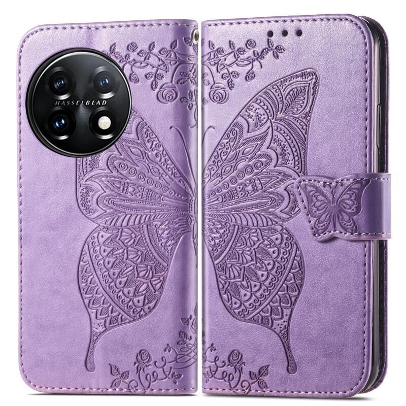 Θήκη τηλεφώνου από δέρμα με ανάγλυφο σχέδιο πεταλούδας και λουλουδιών για OnePlus 11 (Μαύρο)