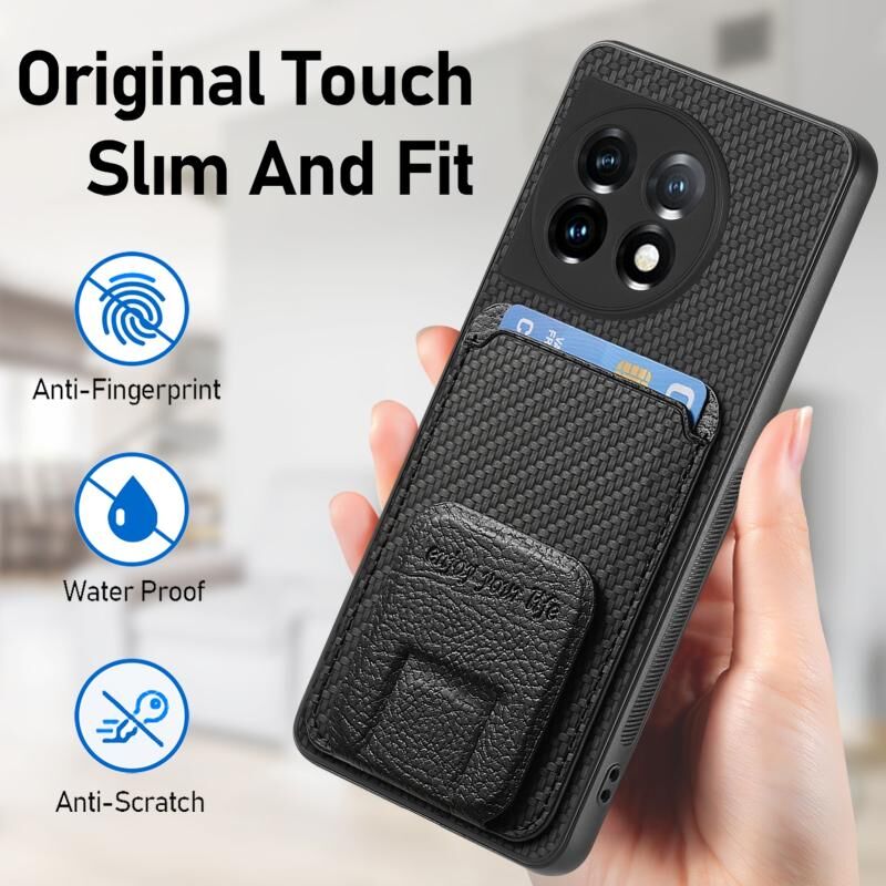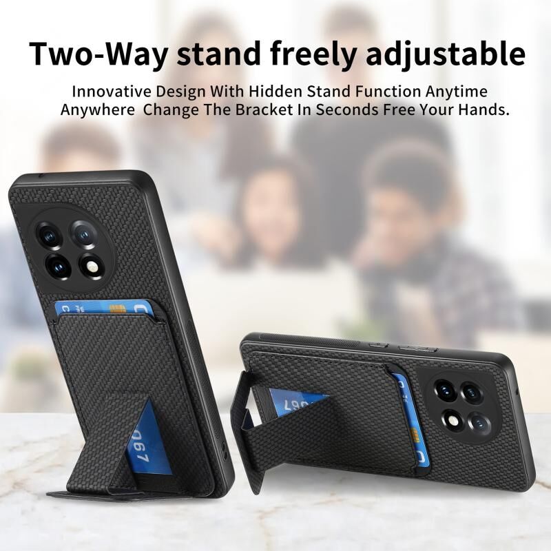For OnePlus 11 Carbon Fiber Card Bag Fold Stand Phone Case(Black)