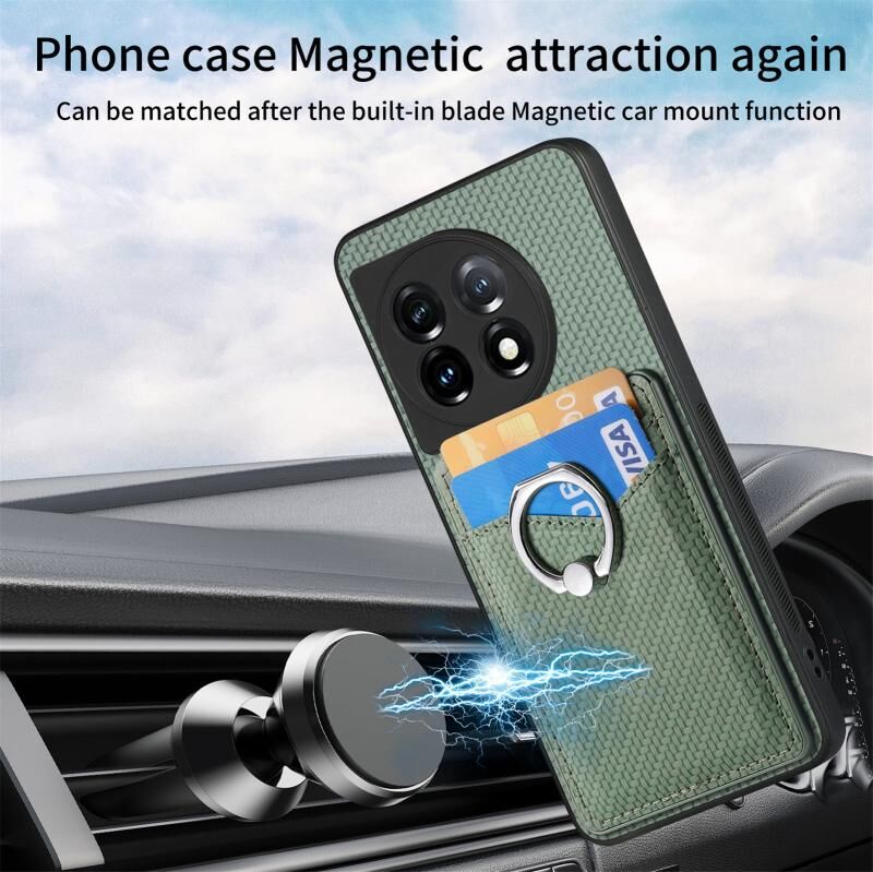 Για OnePlus 11 Carbon Fiber κάρτα πορτοφόλι δαχτυλίδι κάτοχος θήκη τηλεφώνου (πράσινο)