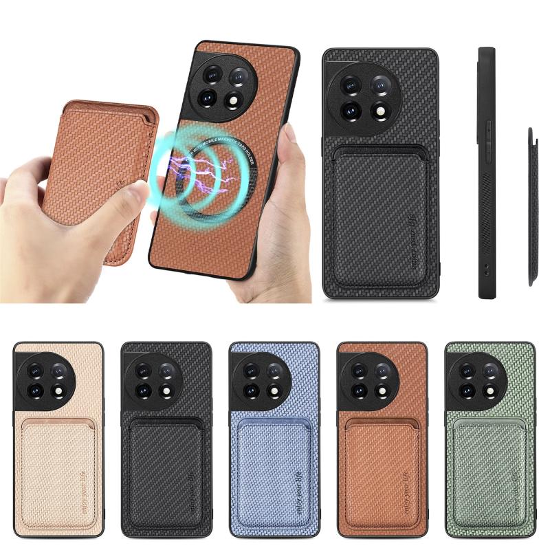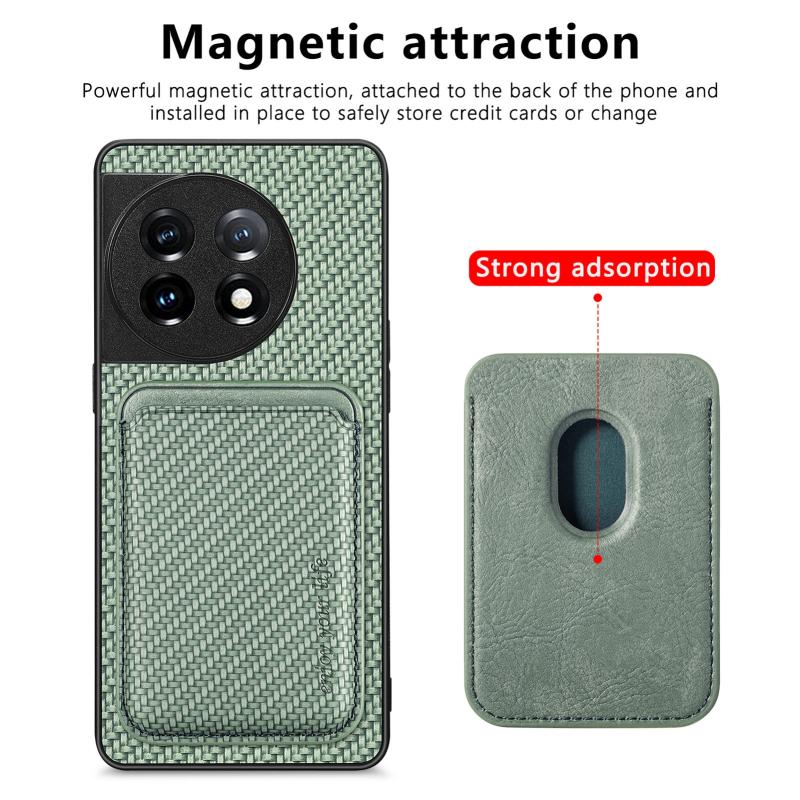 For OnePlus 11 Carbon Fiber Leather Card Magsafe Magnetic Phone Case(Green)