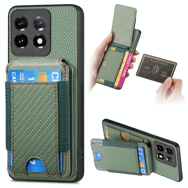 Για OnePlus 11 Carbon Fiber Κάθετη Flip Wallet Stand υπόθεση τηλεφώνου (πράσινο)