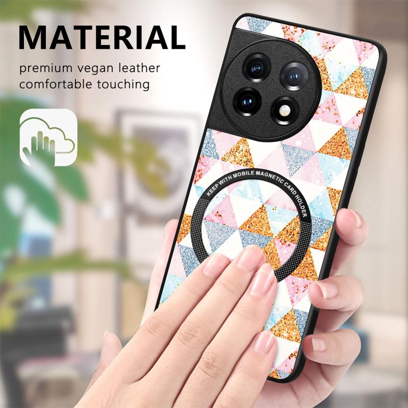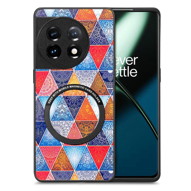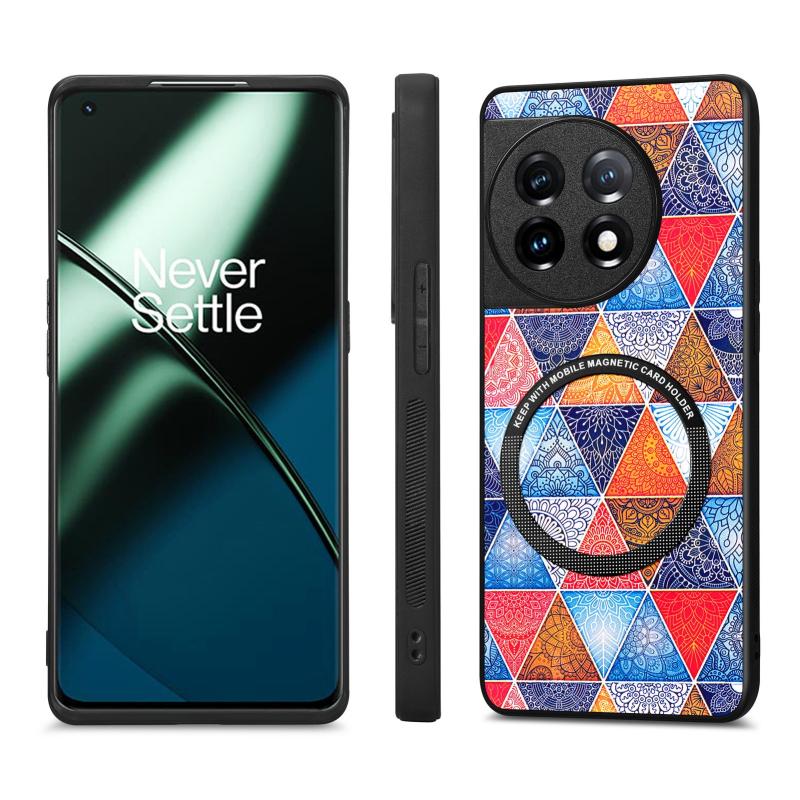 For OnePlus 11 Colored Drawing Leather Skin Magnetic Back Cover Phone Case(Rhombus Mandala)