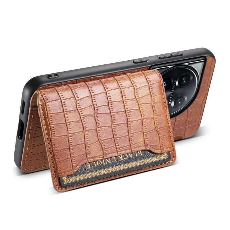 Θήκη τηλεφώνου πλήρους κάλυψης για OnePlus 11 με υφή κροκόδειλου και σχέδιο τσάντας κάρτας (Καφέ)