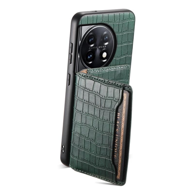 Θήκη τηλεφώνου πλήρους κάλυψης για OnePlus 11 με υφή κροκόδειλου και σχέδιο τσάντας κάρτας (Καφέ)