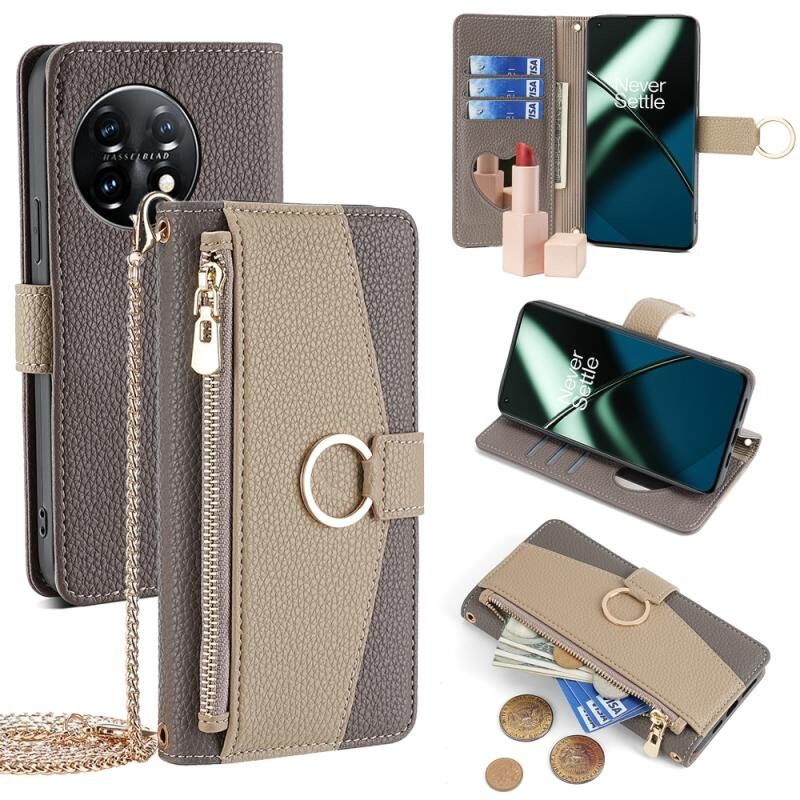 Για OnePlus 11 Crossbody Litchi Υφή δέρμα υπόθεση τηλεφώνου (γκρι)
