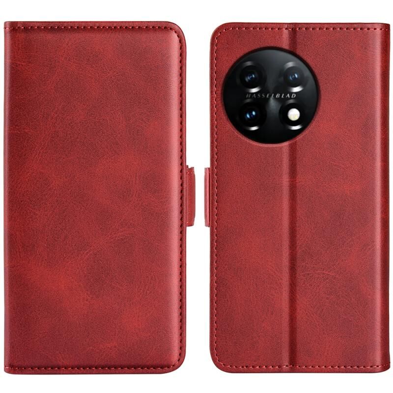 Για OnePlus 11 Διπλής όψης μαγνητική πόρπη δερμάτινη θήκη τηλεφώνου (κόκκινο)