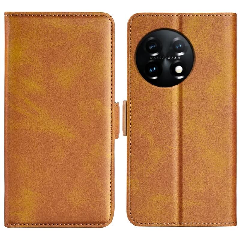 Για OnePlus 11 Διπλής όψης μαγνητική πόρπη δερμάτινη θήκη τηλεφώνου (κίτρινο)