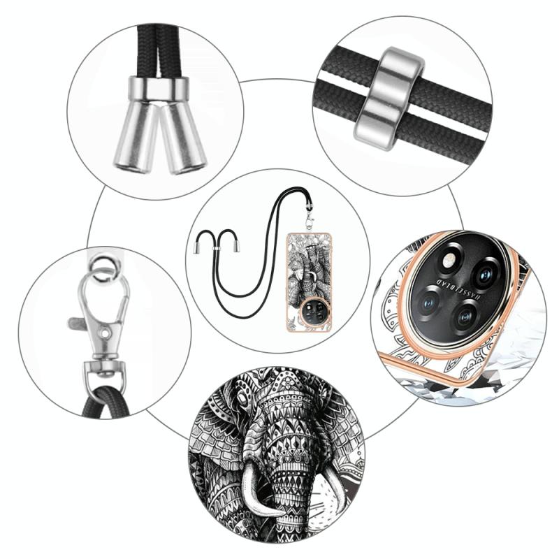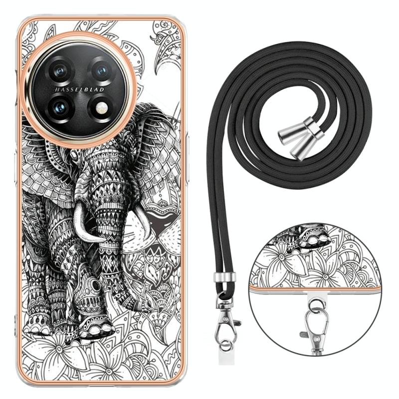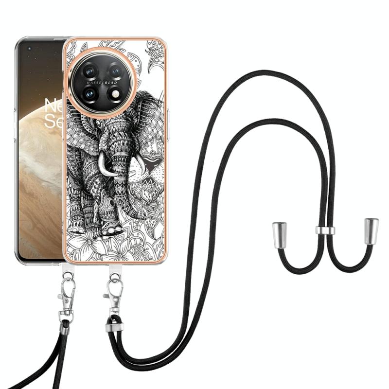 For OnePlus 11 Electroplating Dual-side IMD Phone Case with Lanyard(Totem Elephant)