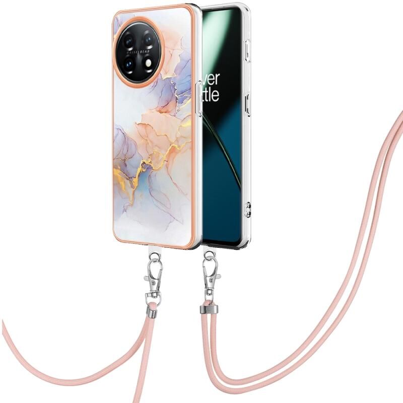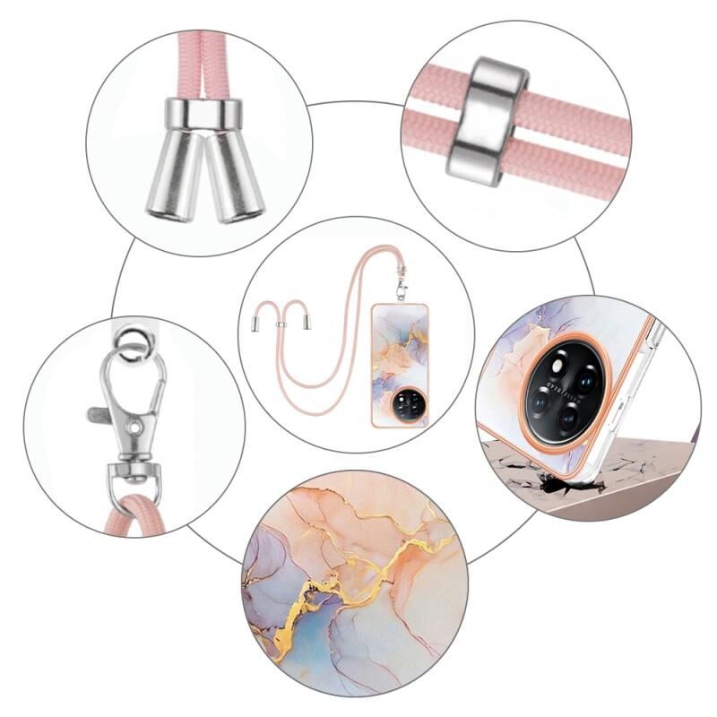 Θήκη τηλεφώνου OnePlus 11 με επιμετάλλωση IMD TPU με κορδόνι (Ροζ Λέπια)