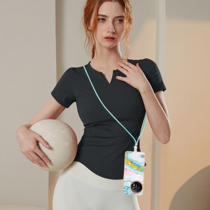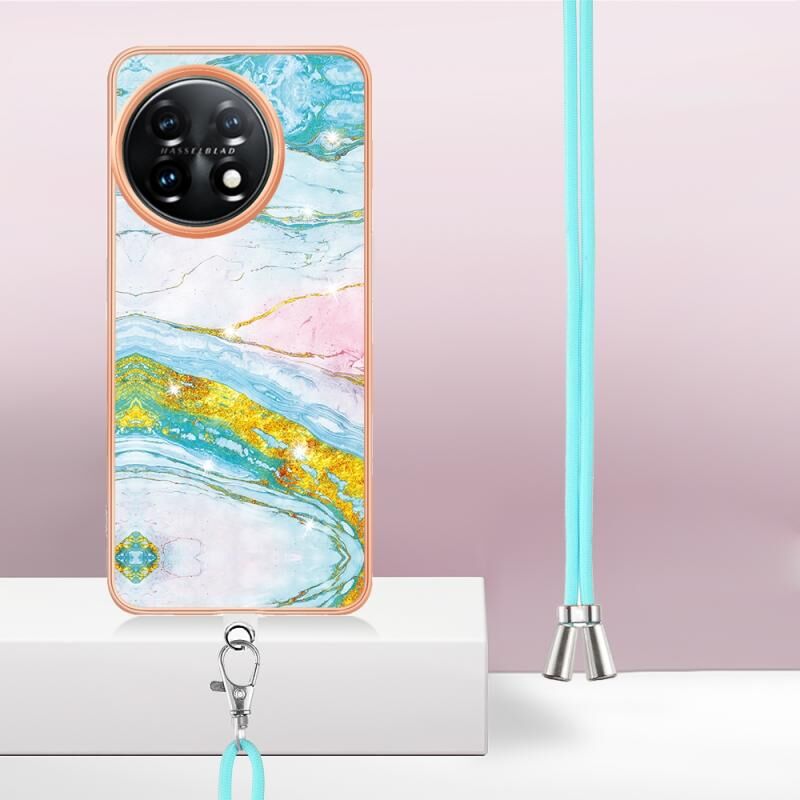 Θήκη τηλεφώνου OnePlus 11 με επιμετάλλωση, σχέδιο μάρμαρου, διπλής όψης IMD με κορδόνι (Μωβ 001)