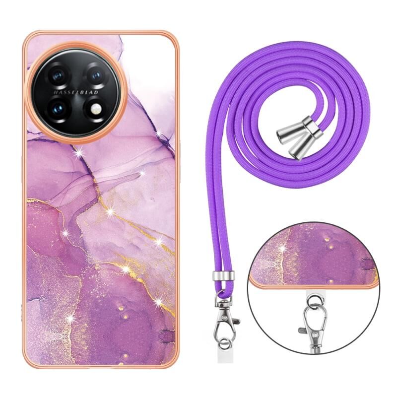 Θήκη τηλεφώνου OnePlus 11 με επιμετάλλωση, σχέδιο μάρμαρου, διπλής όψης IMD με κορδόνι (Μωβ 001)