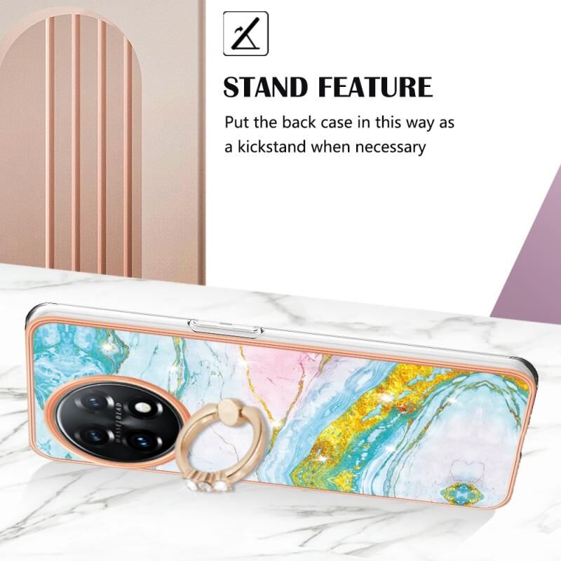 Θήκη τηλεφώνου OnePlus 11 με Ηλεκτρολυτική Επικάλυψη, Μάρμαρο IMD, TPU και Δακτύλιο Στήριξης (Χρυσό Ρόδι 005)