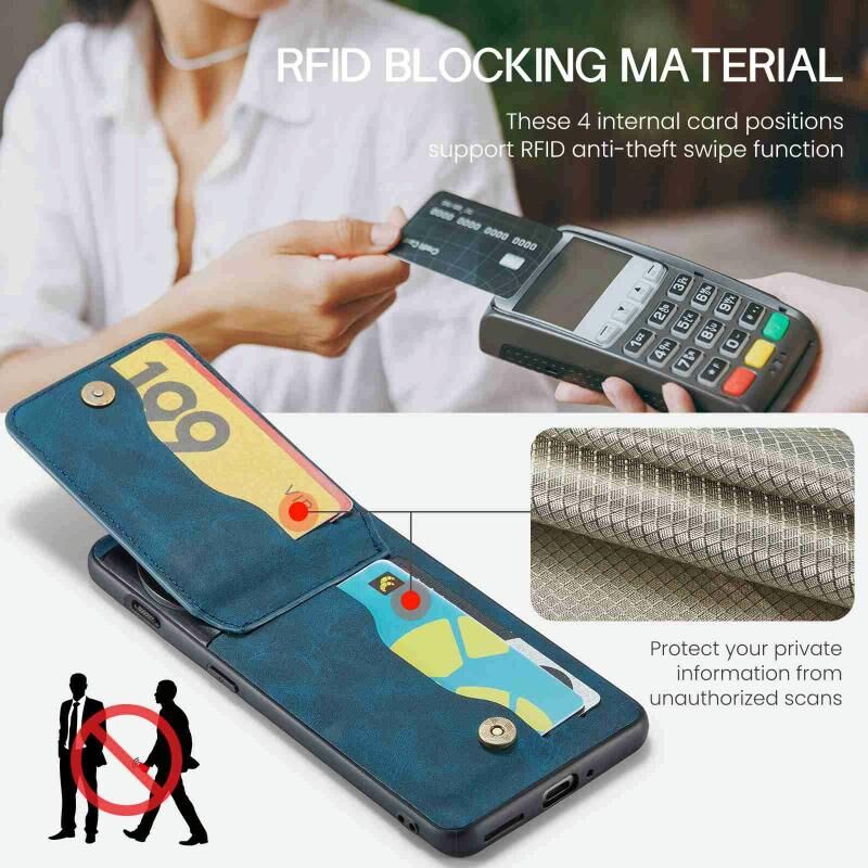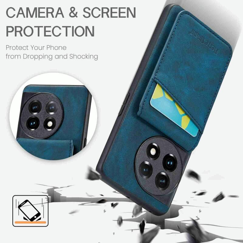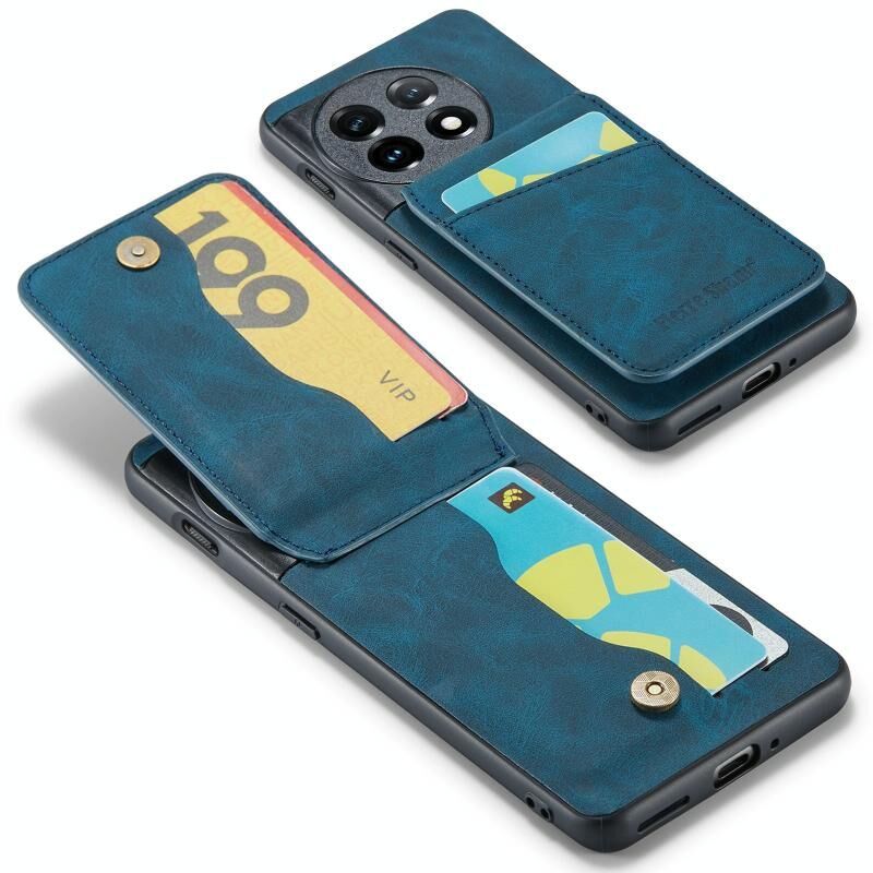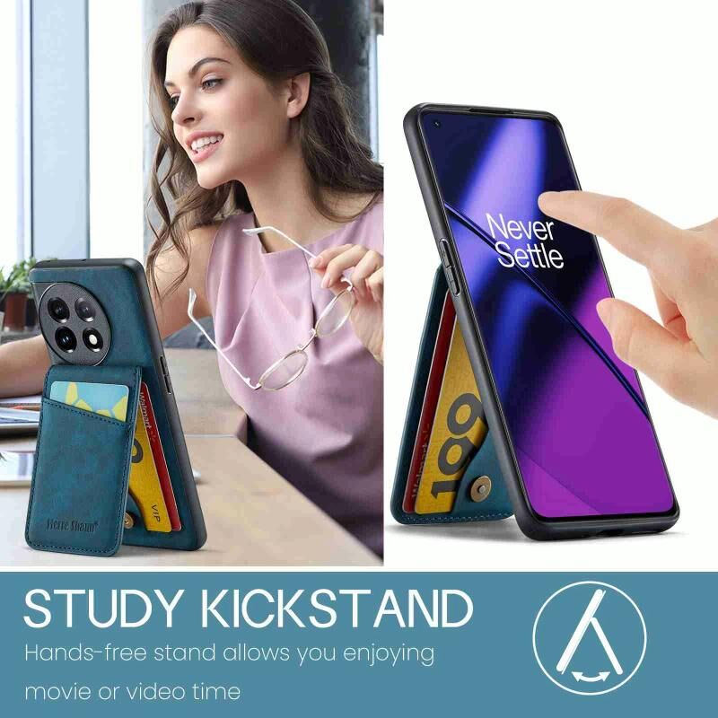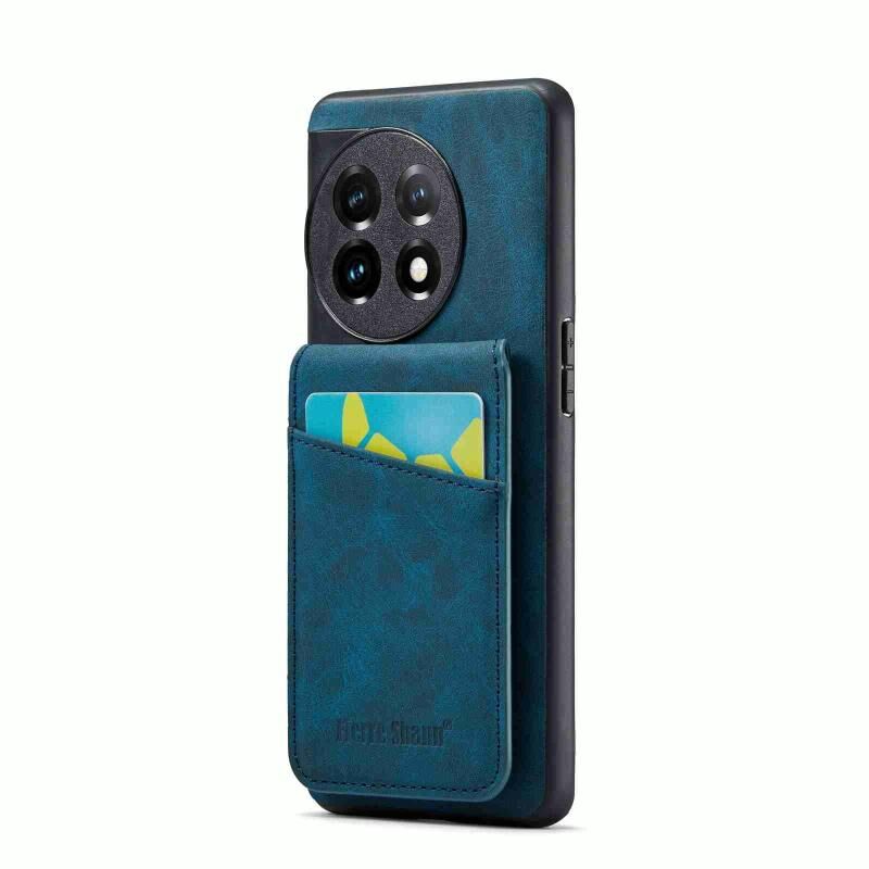 Για OnePlus 11 Fierre Shann Crazy Horse Card Holder πίσω κάλυμμα PU υπόθεση τηλεφώνου (μπλε) (FIERRE SHANN)