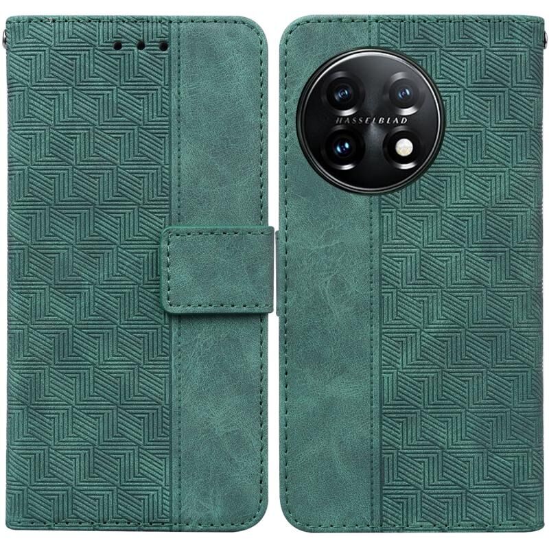Για OnePlus 11 γεωμετρική ανάγλυφη δερμάτινη θήκη τηλεφώνου (πράσινο)