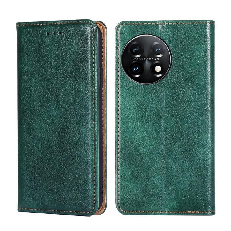 Για OnePlus 11 Γυαλιστερό λάδι στερεό χρώμα μαγνητικό δέρμα τηλέφωνο υπόθεση (πράσινο)