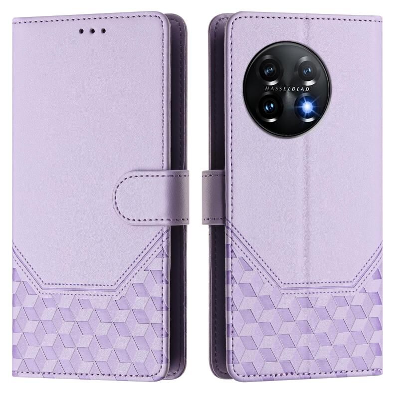 Για OnePlus 11 Honeycomb ανάγλυφο RFID δερμάτινη θήκη τηλεφώνου (Light Purple)