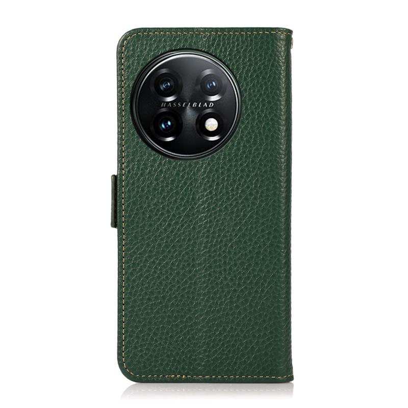 Θήκη τηλεφώνου OnePlus 11 KHAZNEH με μαγνητικό κλείσιμο, από γνήσιο δέρμα Litchi και προστασία RFID (Μαύρο)