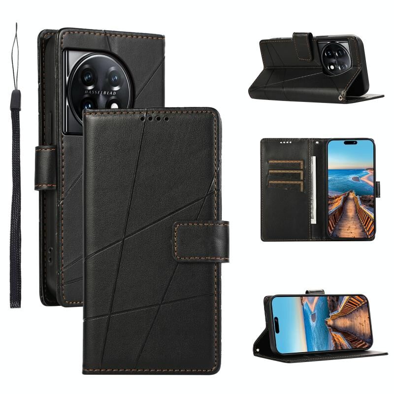 Θήκη τηλεφώνου OnePlus 11 από γνήσιο δέρμα PU με ανάγλυφη υφή και μπλε χρώμα.