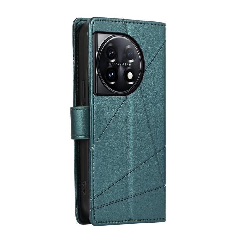 Θήκη τηλεφώνου OnePlus 11 από γνήσιο δέρμα PU με ανάγλυφη υφή και μπλε χρώμα.