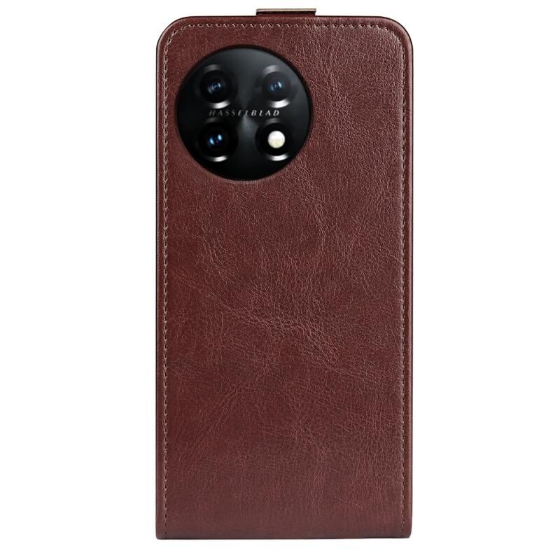 Για OnePlus 11 R64 Υφή Κάθετη Flip δέρμα τηλέφωνο υπόθεση (καφέ)