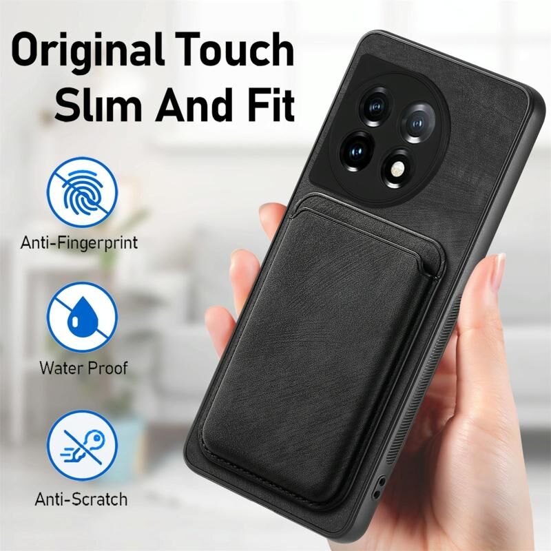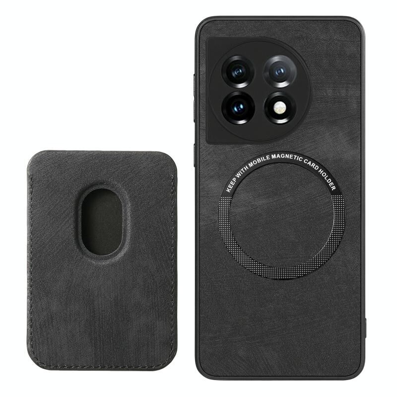 Για OnePlus 11 Ρετρό δερμάτινη τσάντα κάρτα μαγνητική θήκη τηλεφώνου (μαύρο)