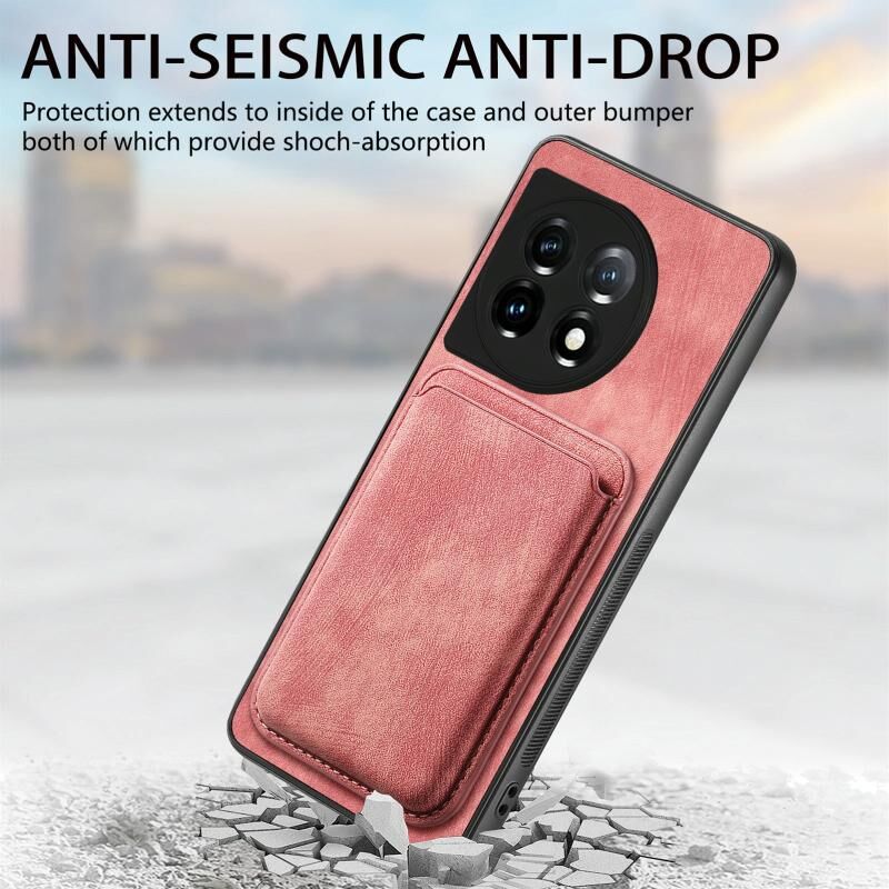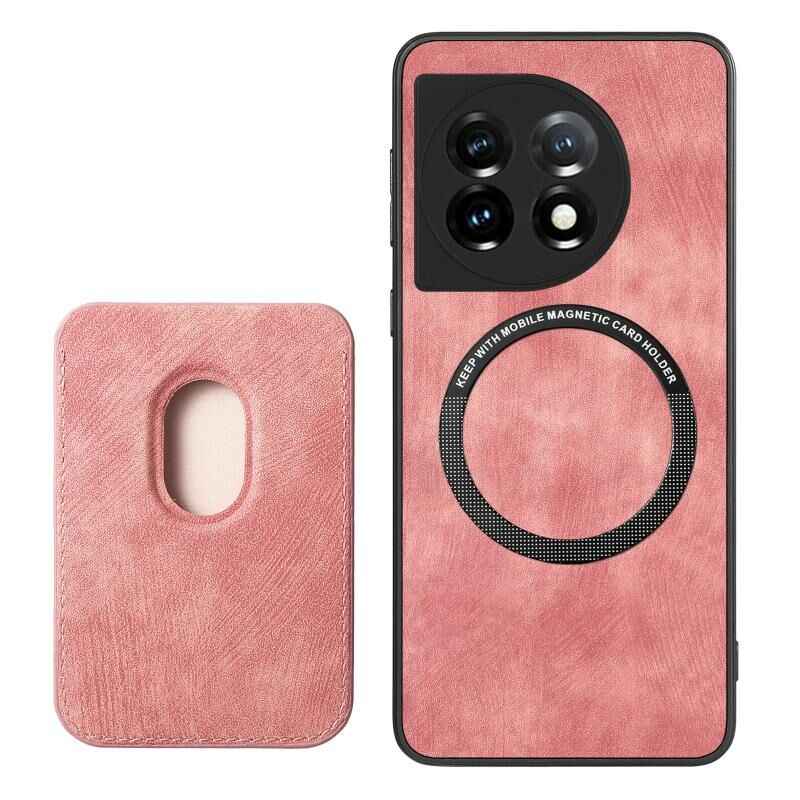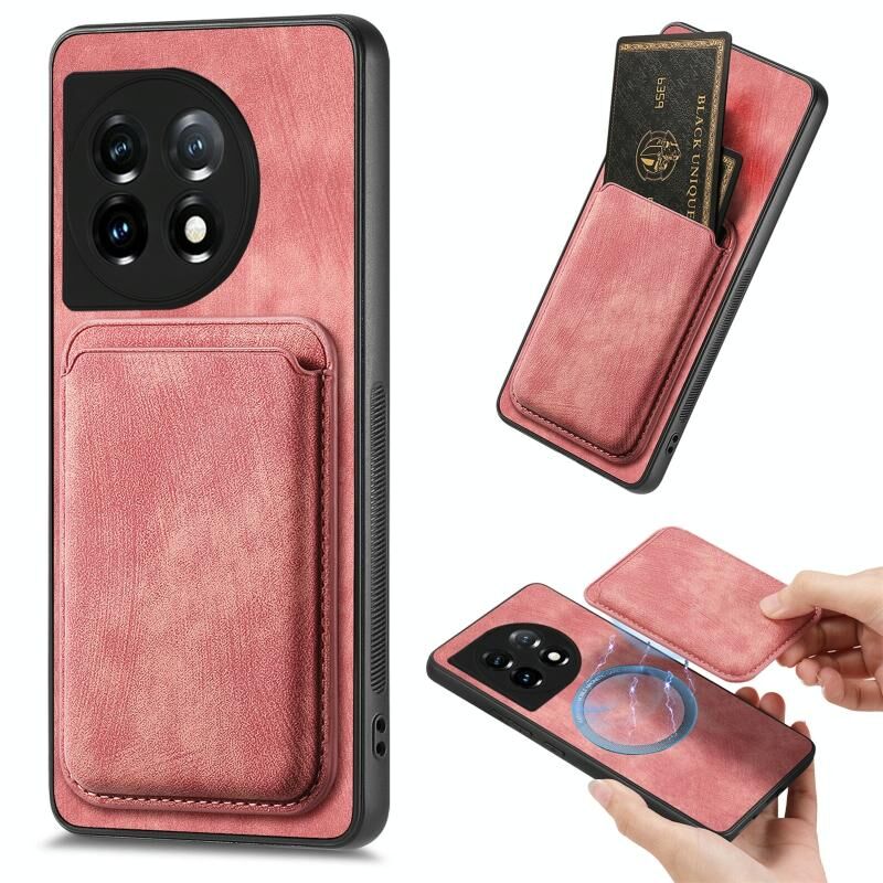 Για OnePlus 11 Ρετρό δερμάτινη τσάντα κάρτα μαγνητική θήκη τηλεφώνου (ροζ)