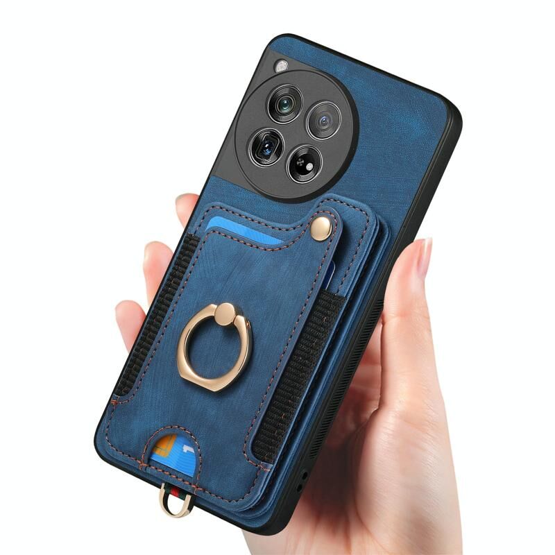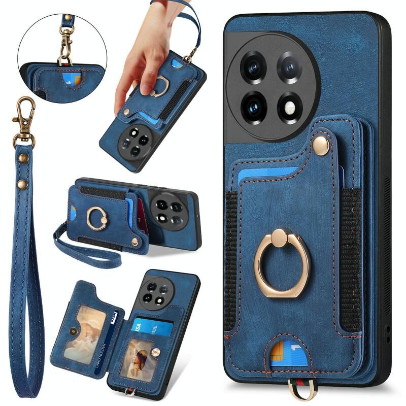 Για OnePlus 11 Ρετρό δέρμα αίσθηση δαχτυλίδι πολυ-κάρτα RFID πορτοφόλι υπόθεση τηλεφώνου (μπλε)