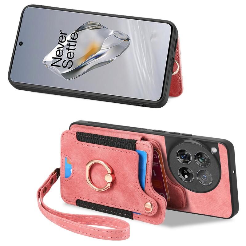 Για OnePlus 11 Ρετρό δέρμα αίσθηση δαχτυλίδι πολυ-κάρτα RFID πορτοφόλι υπόθεση τηλεφώνου (ροζ)