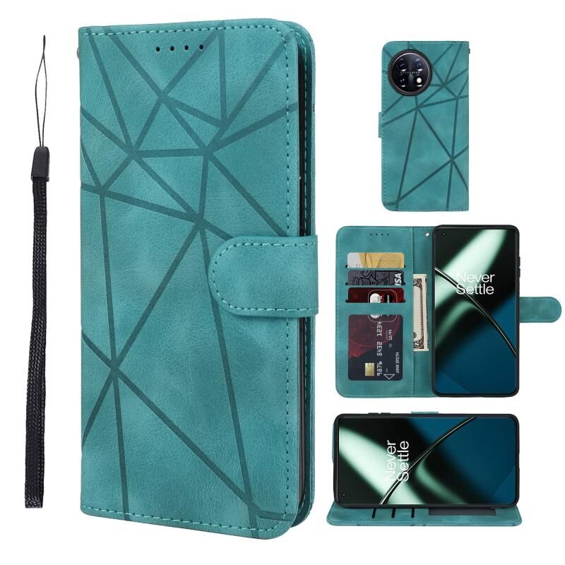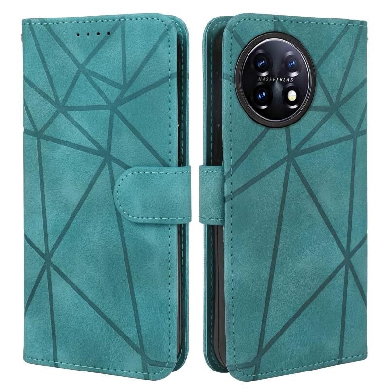 Για OnePlus 11 Skin Feel γεωμετρικές γραμμές δερμάτινη θήκη τηλεφώνου (πράσινο)
