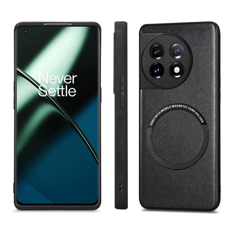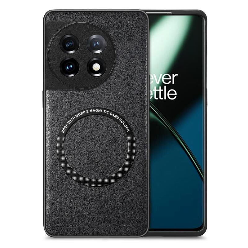 Θήκη τηλεφώνου από δέρμα με μονόχρωμο χρώμα για OnePlus 11 (Μαύρο)