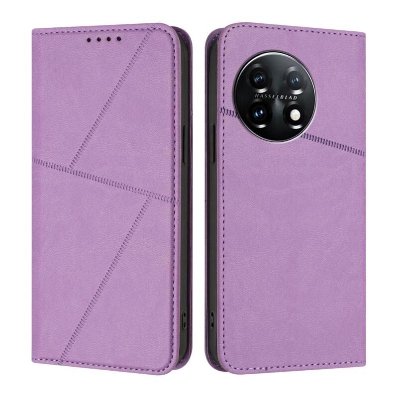 For OnePlus 11 Strong Magnetic Frosted Flip Leather Phone Case(Light Purple)